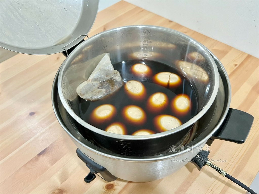 ➍電鍋跳起後,可拿出滷包,留下雞蛋在鍋中浸泡保溫,等待入味即完成!